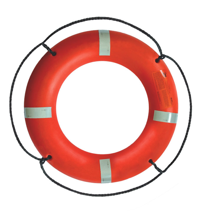 Dispositivo flotante Aro salvavidas de 30" color naranja, que cumple con la NOM, provisto de una guirnalda, fabricado con materiales que mantengan su propia flotabilidad, llevar colocada de manera equidistante en forma de cinturón o en ambos lados del cuerpo del aro salvavidas, en cuatro puntos de la circunferencia del aro, cinta retro-reflejante que cumple con SOLAS.